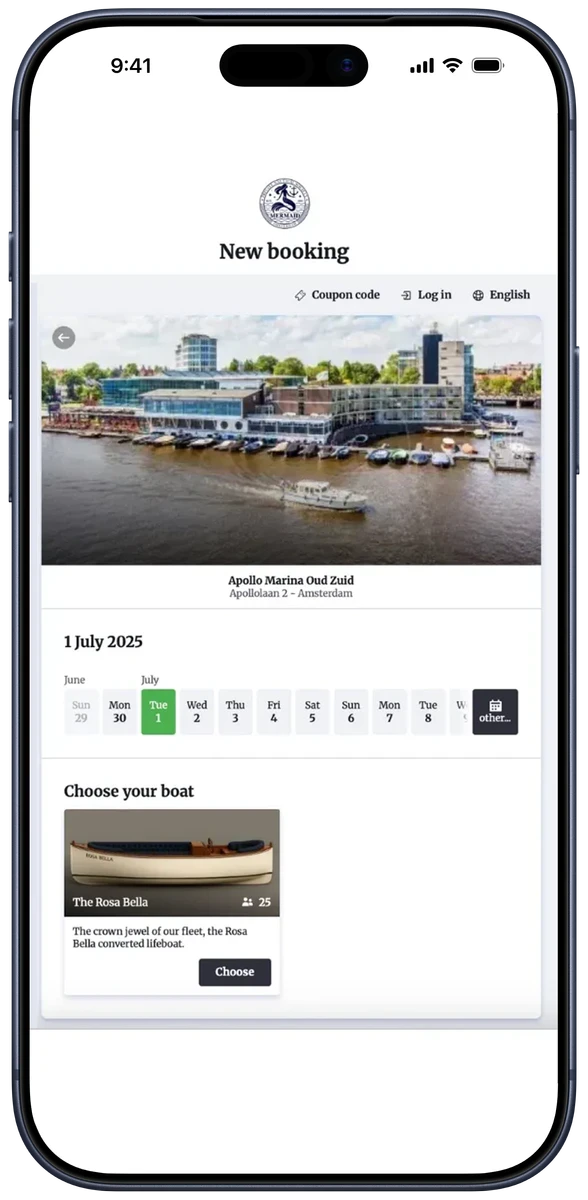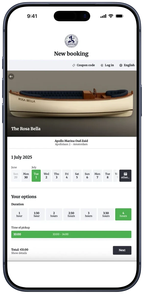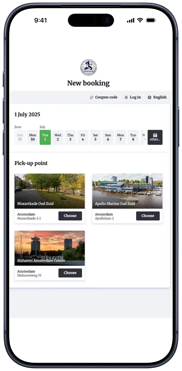 Once your registration is complete, you receive your personal login details. Reserve your preferred time and date online, arrive at the dock, and set sail. Effortless by design.